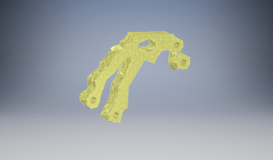 The output of the generative shape analysis isn’t manufacture friendly. So the CAD is cleaned up and a final FEA is run to verify the design.